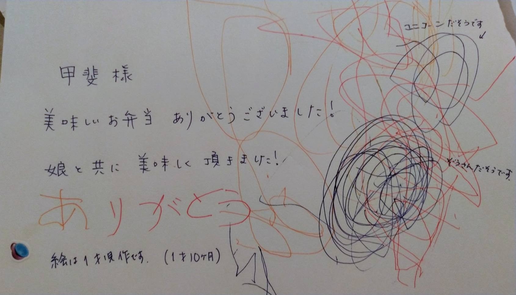そしてこの活動を続ける中で、配達先の女の子から支援者の方に向けた手紙が届いたり、美味しそうにお弁当を食べている写真が送られてきたりと、感謝の輪が自然と広がって来ました。