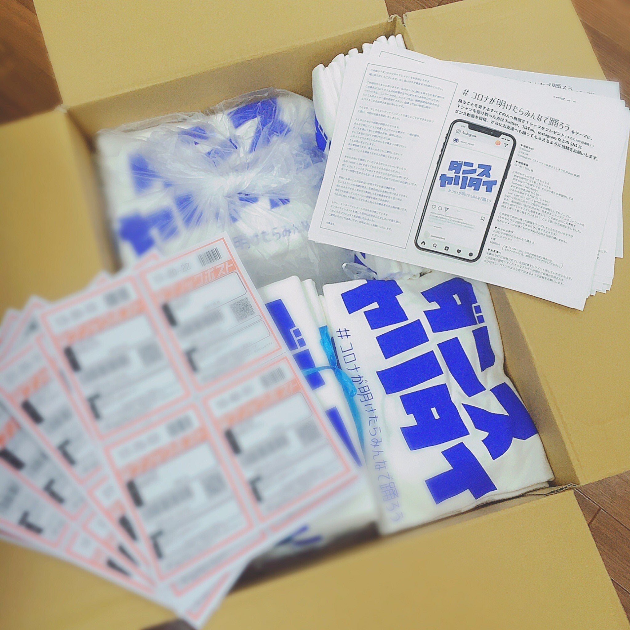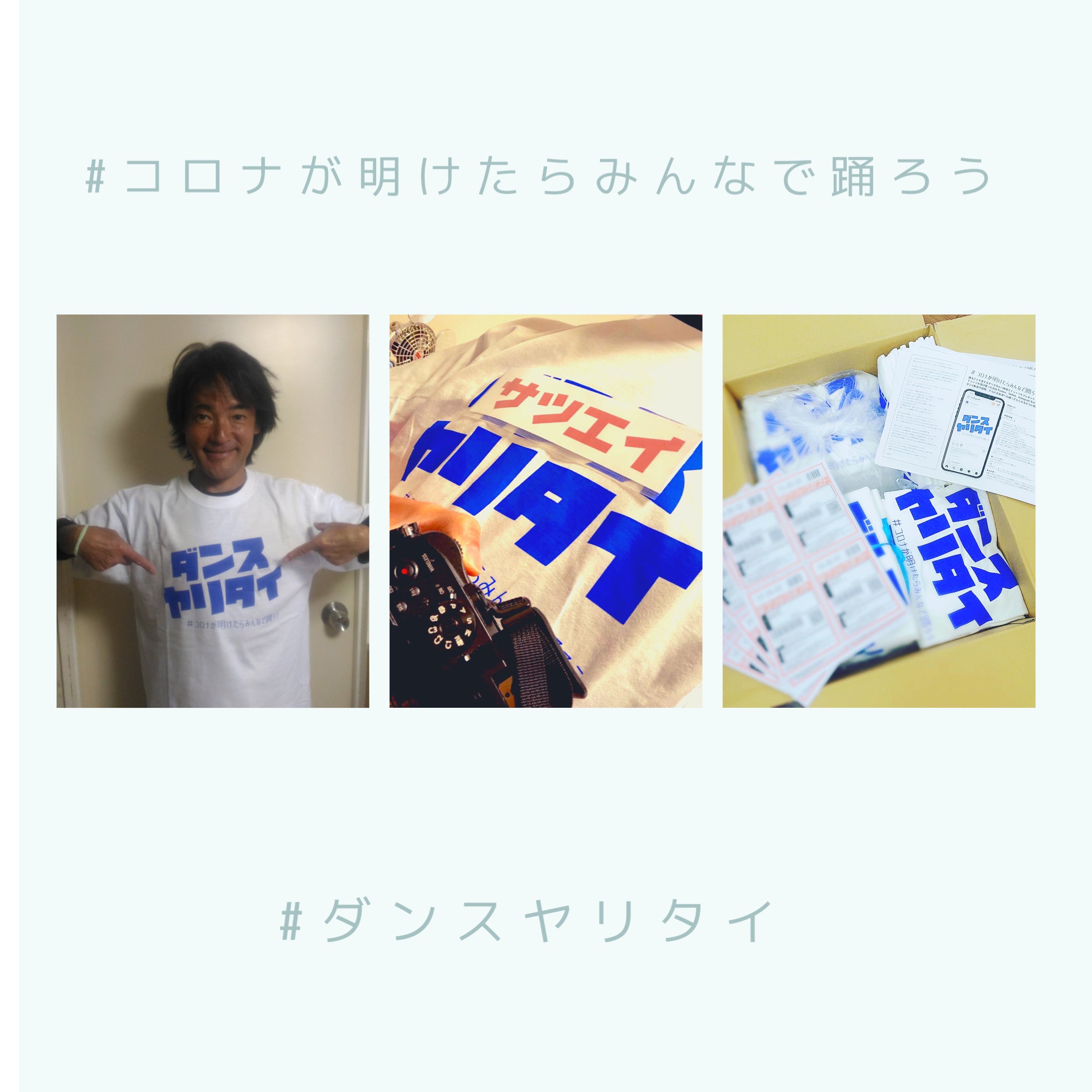 無償でTシャツを送り(既に100枚はダンス仲間に郵送開始)