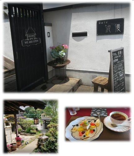 ご案内 「浪漫」の看板をつい見逃してしまいそうな民家です。洒落た作りで、案内された席から落ち着いた風情の庭を無ご覧いただけます。比較的女性のお客様が多いですが男性も大歓迎です。ふわとろオムライスにケーキをおつけてフルでご注文いただく方も多いです。先ずはスムージー、次はサラダ、スープチキンライスがデミグラスソースを絡めてまた格別のお味です。ケーキはモンブランのカットに周りをフルーツ、チョコレートソースと飾り砂糖で見た目も綺麗。コーヒーと食後の余韻、、、。 これで¥1,580はお得感あります。またのお越しをお待ち申し上げております。