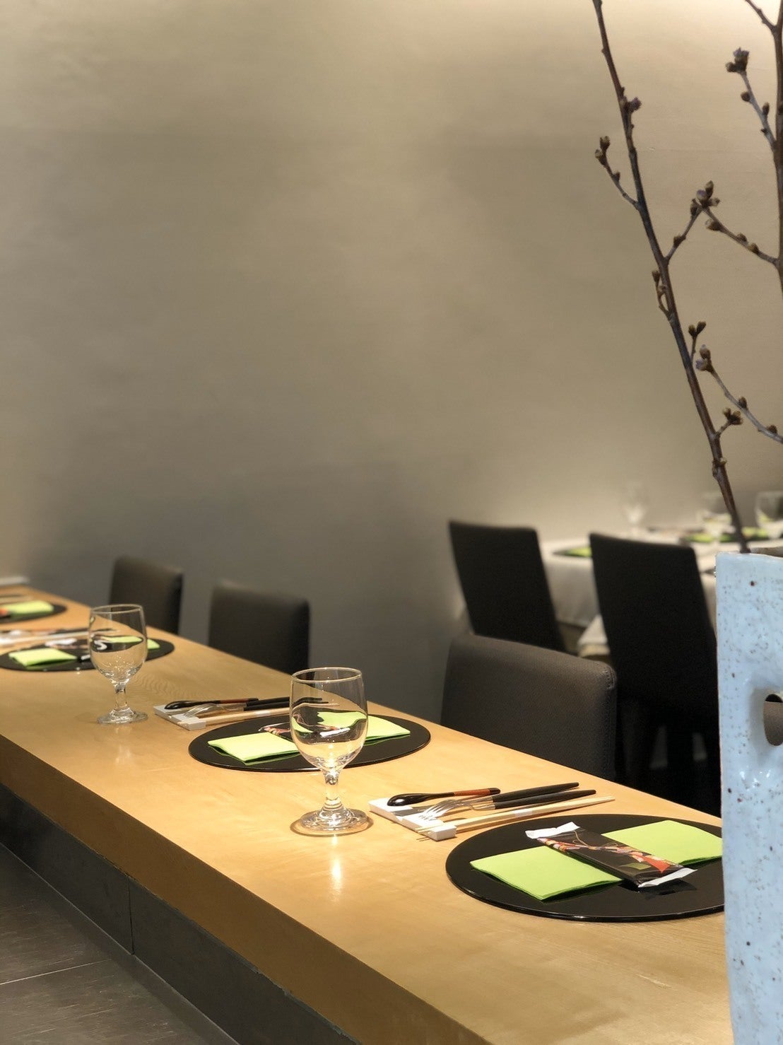 店主は調理師専門学校に通っている時から“ 10年経ったら自分のお店を出す“ と決めて修行して参りました。夫婦ともに御茶ノ水にあります「山の上ホテル」で店主は調理、私はサービスで経験を積み、実際には15年かかってしまいましたがようやく令和2年1月にOPENする事が出来ました!