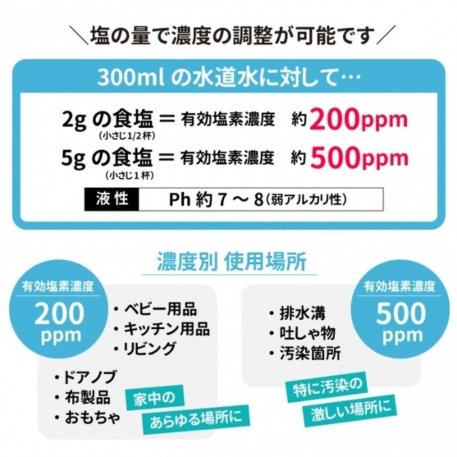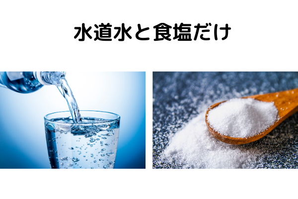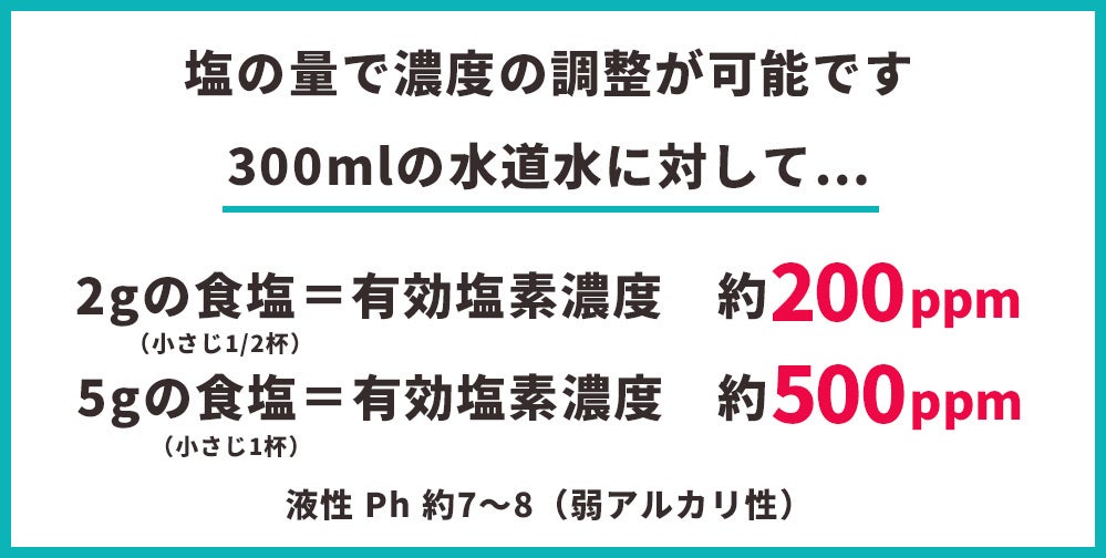 【300mlの水道水に対して、2gの食塩(小さじ1/2杯)】