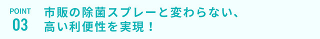 コスパ良くカンタンに除菌を行うことができ、高い利便性を実現しました。