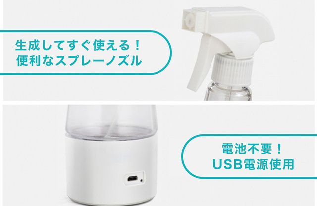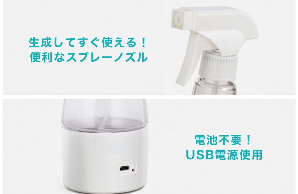 上記の画像のようにスプレー式のノズルになっているので、生成したらすぐにでも使うことができます。