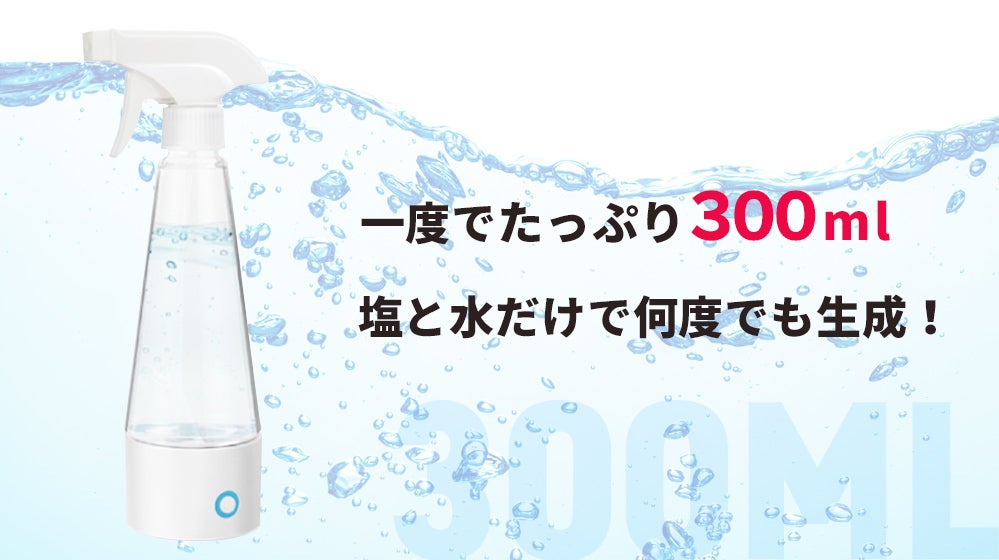 基本的に市販の除菌スプレーは300~400mlのものが多いので、1回生成すれば市販品と同じくらいの感覚で使用いただけます。
