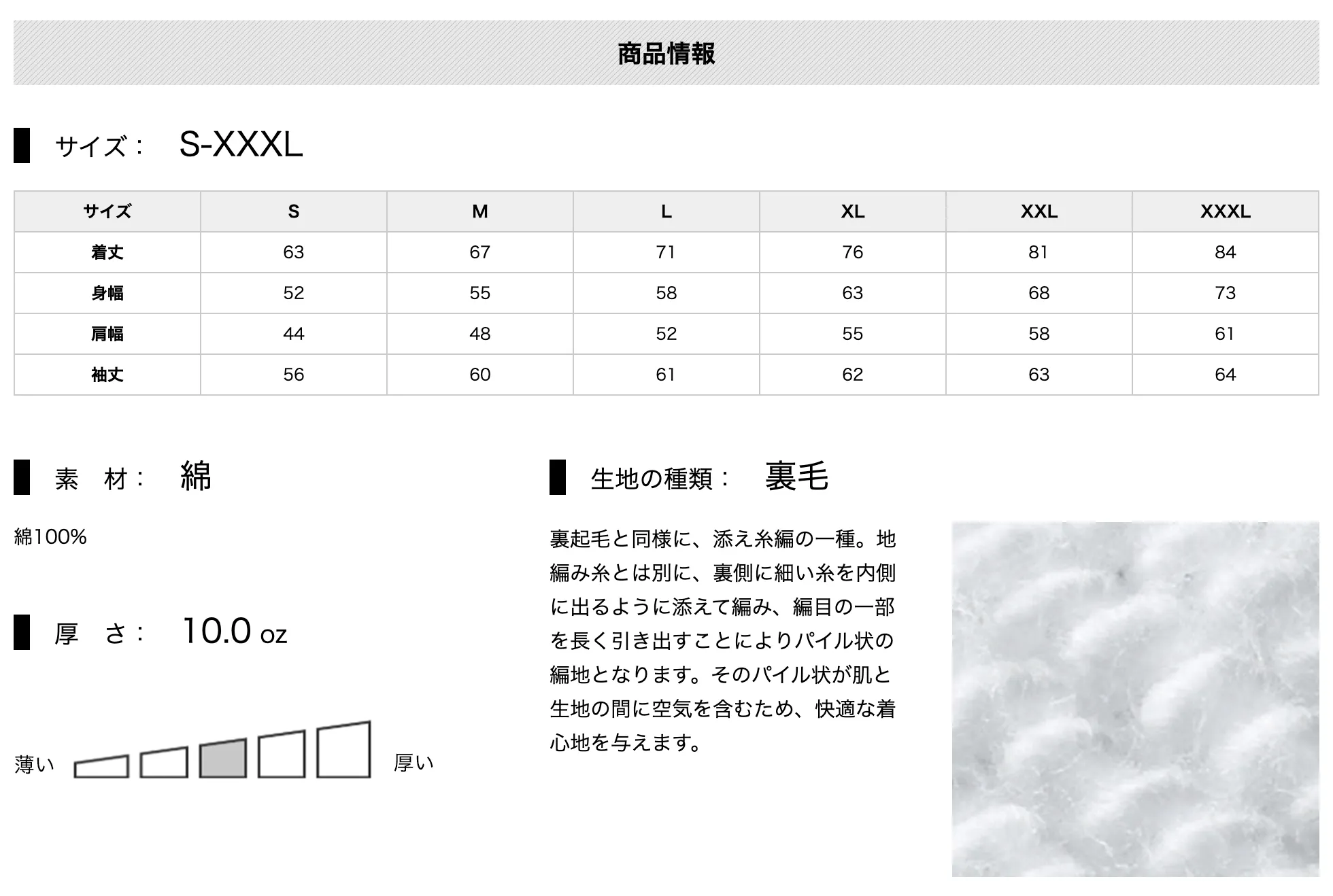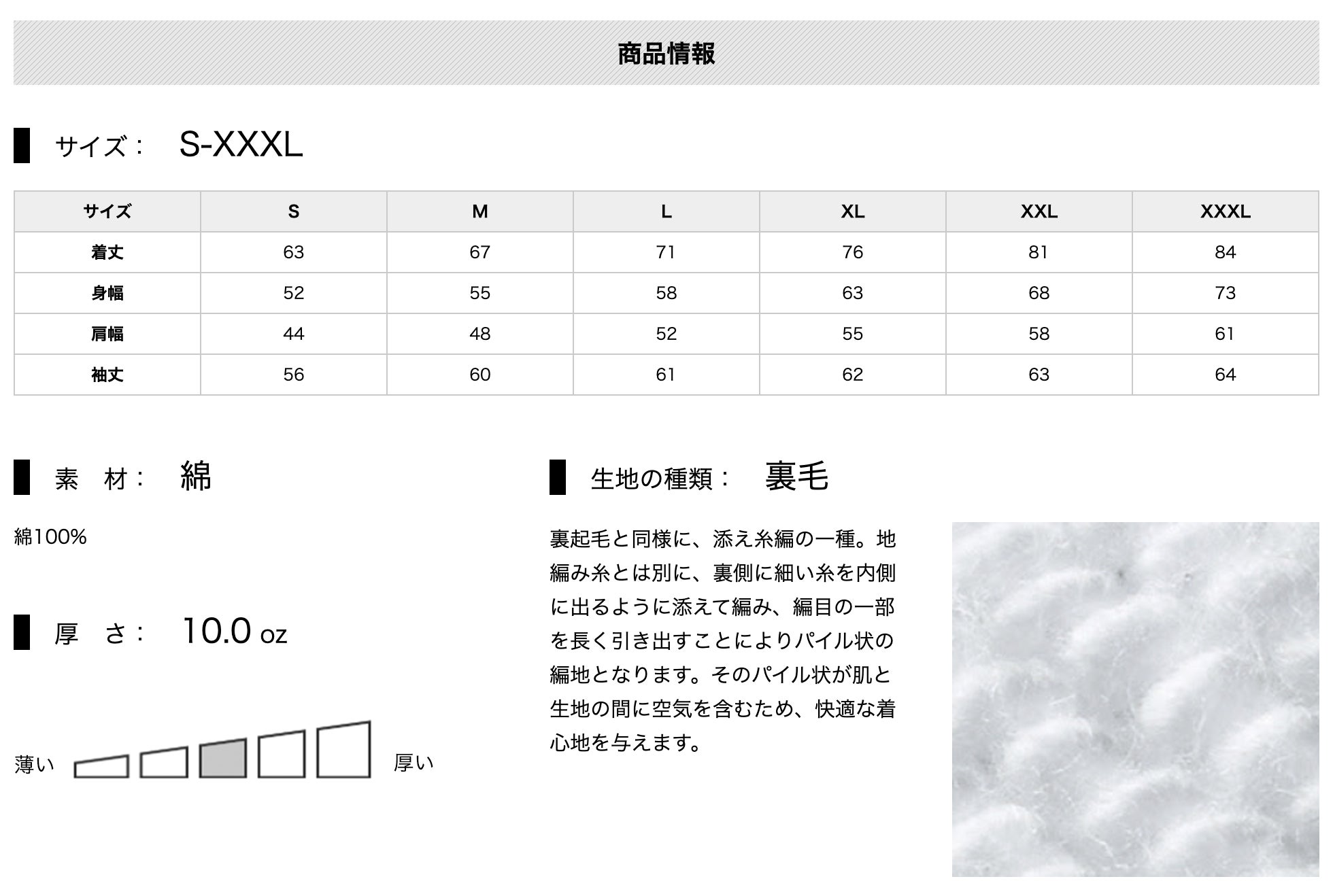 Tシャツとパーカーのサイズ