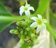 🐬ノニー:花は白く一年中開花しています。そのハチミツは、素敵で力強い風味を持つ濃い黄金色です。 その葉は点眼薬に、根は染料に使用できます。