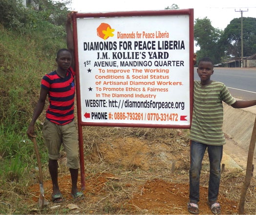 リベリアにダイヤモンド・フォー・ピースの看板が堂々完成! 新オフィスが動き出しました!私たちDFPと一緒に、あなたの名前をリベリアの大地に刻みませんか?