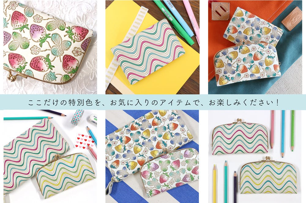 クラウドファンディングにむけて、人気柄の「いちご」と、長年愛されてきた伝統柄「横波(よこなみ)」それぞれの柄を2色の特別カラーでご用意しました。