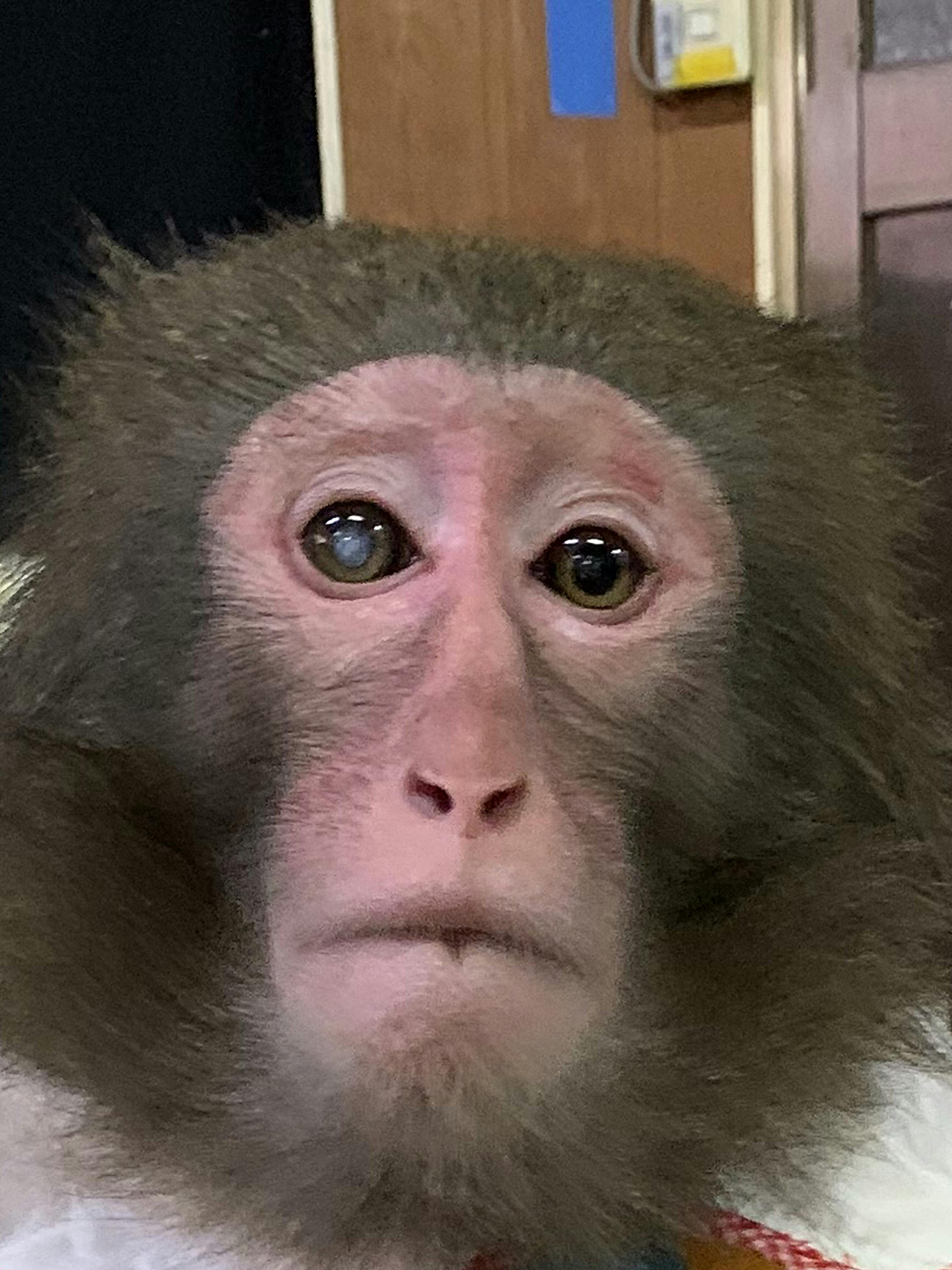お猿さんの白内障の手術をしてくださるところがなかなか見つからず、右目だけ症状が出ていたので、点眼薬などで進行を遅らせる処置をしておりました。