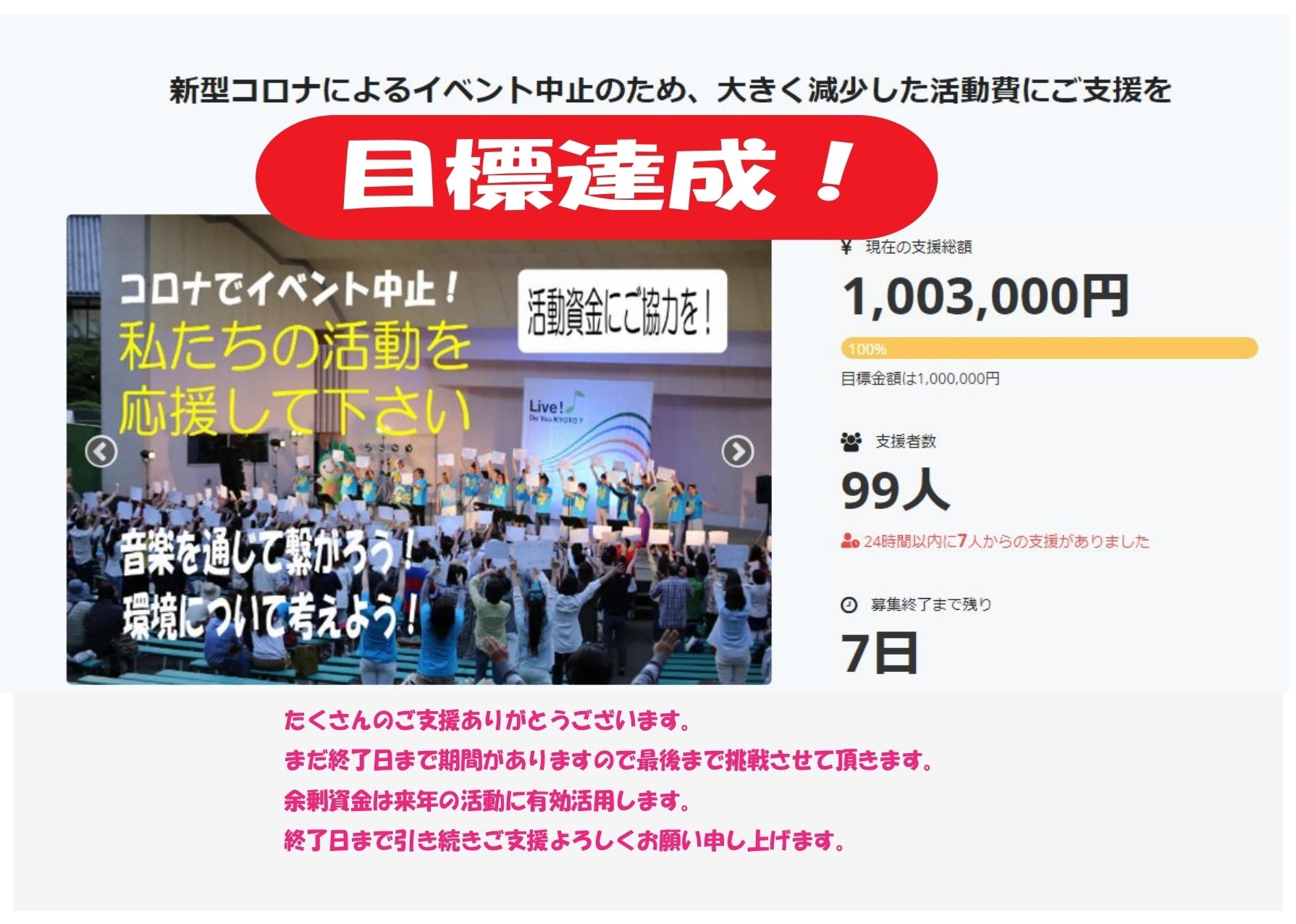 皆様のご支援のおかげで 100万円の目標を達成しました。