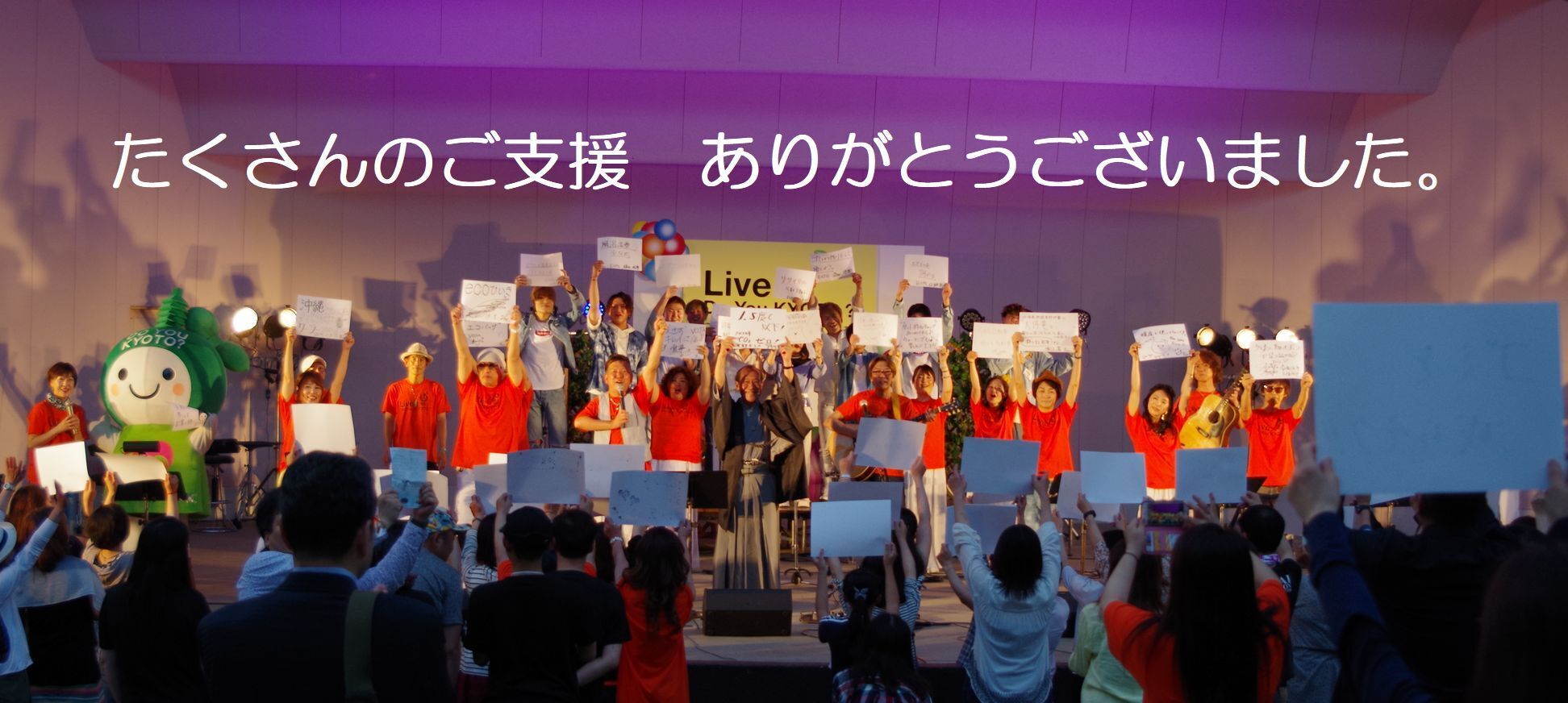 もう数分でプロジェクトが終了します。5月1日からの1か月間たくさんの応援、ご支援を頂きましてありがとうございました。目標達成率が130%を超える結果となり、本当に感謝の気持ちでいっぱいです。これからも、皆様のお力を支えに環境啓発の事業推進に努力し、地域の皆様に音楽とエコ活動を楽しんで頂けるよう努力して参ります。今後も活動のご報告はこちらやSNSなどで発表していきますので引き続きよろしくお願い申し上げます。先ずは皆様へお礼までLive! Do You KYOTO?実行員会代表 秋人