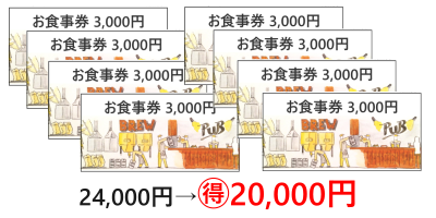 1号店、2号店の両方で使える、3000円のお食事券8枚+①