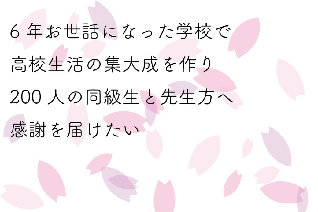 都内の中高一貫校で5年間を過ごし、残り一年で卒業を迎えます。受け身ではなく、自主的に行動を起こすことの楽しさ、誰かが喜んでくれた時の嬉しさなどを学びました、