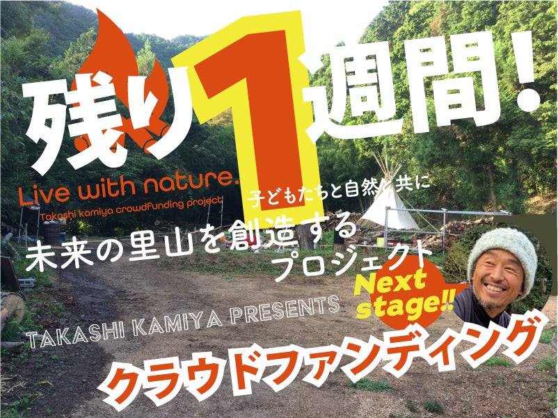 「子どもたちと自然と共に未来の里山を創造するプロジェクト」プロジェクトオーナーの神谷高志です。ここまでご支援いただきましたこと、改めて感謝申し上げます。この度はプロジェクトの募集終了日が近づいてきましたのでお知らせです。募集終了日は2020年06月14日です。皆様のご協力がありここまでくることができました。プロジェクトの成功、目標金額の達成、さらなる資金調達のため、ぜひプロジェクトをご友人やSNSにてシェアいただけますと幸いです。こちらのリンクをシェアいただければと思います。https://camp-fire.jp/projects/view/254446それでは、皆さんの期待に応えられるよう、最後まで全力を尽くして取り組んで参ります。