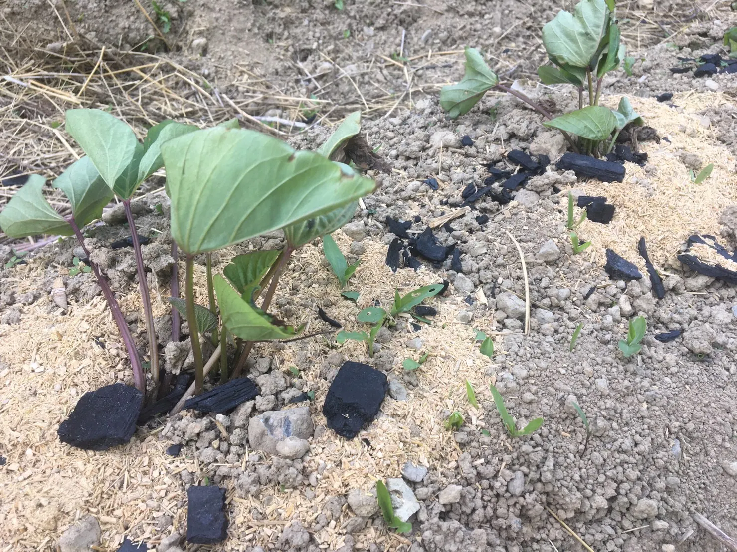 マルチはがすタイミングと竹チップ、竹炭の追加投入を検討中。