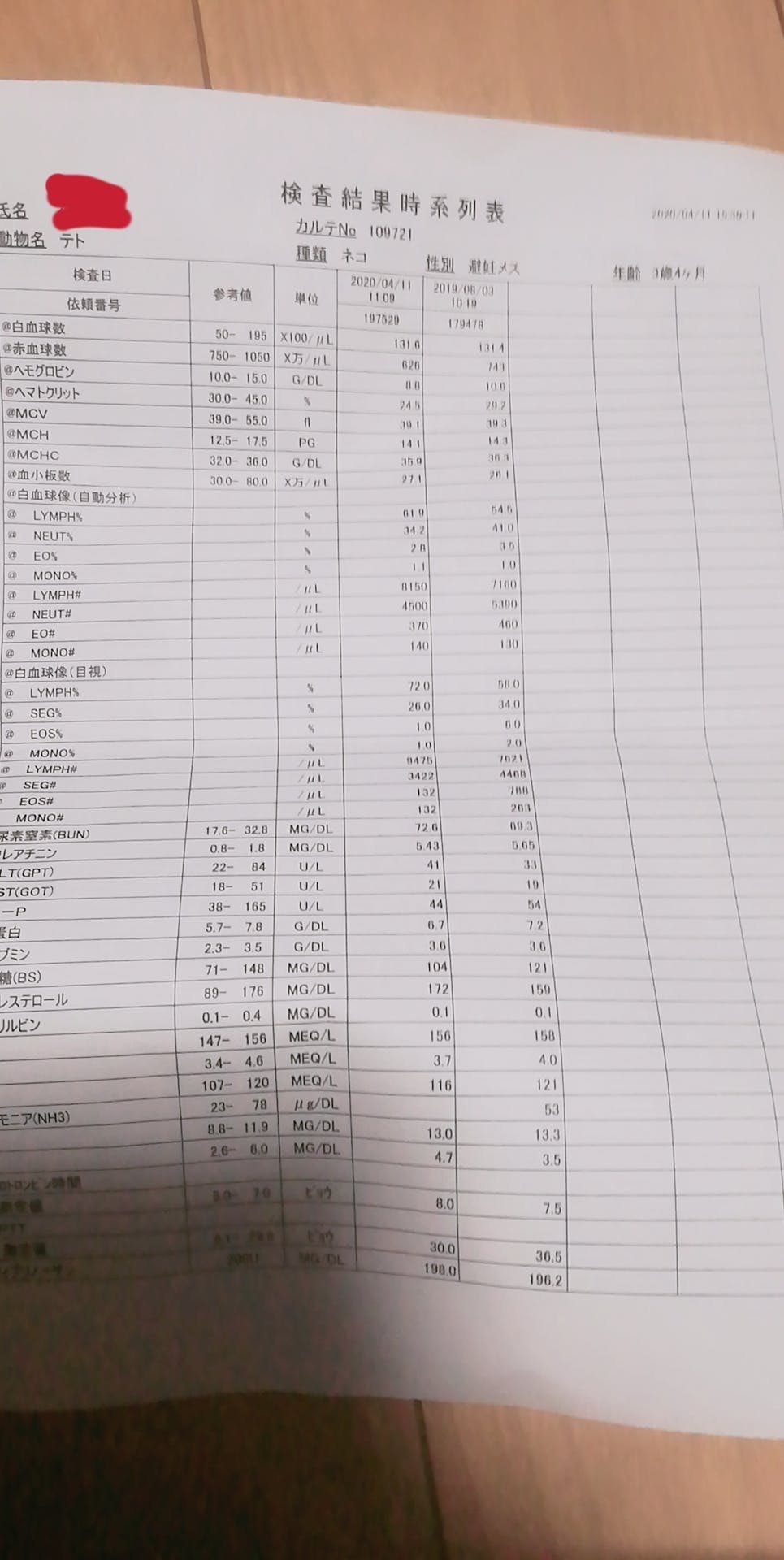 前回よりも少し数値が下がっていましたので少しホッとしました。