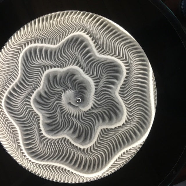 制御された球が砂の上に美しい模様を描き続けるのですが、