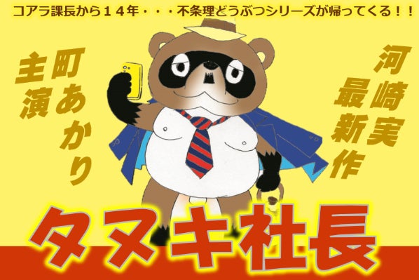 「いかレスラー」「コアラ課長」などでおなじみの河崎実監督が久しぶりに不条理動物シリーズの映画『タヌキ社長』を撮ります!