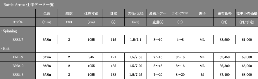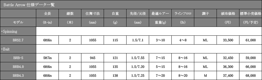 いずれもバット部にリバースマンドレル積層を採用。従来のアクション表示品に対して同等以上のトルク、パワーを持ちながら、キャスト性能はワンランク上の飛距離と正確性を実現。フッキングした魚が暴れにくく、ばれにくいのも大きなメリットになります。