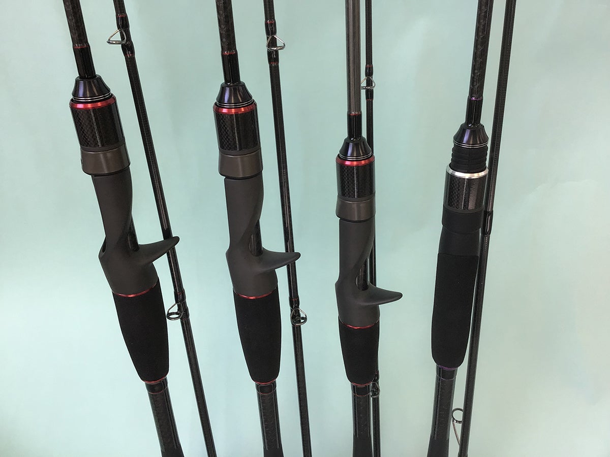 今回プロトタイプとして完成したのは、スピニングロッド1機種、ベイトロッド3機種。