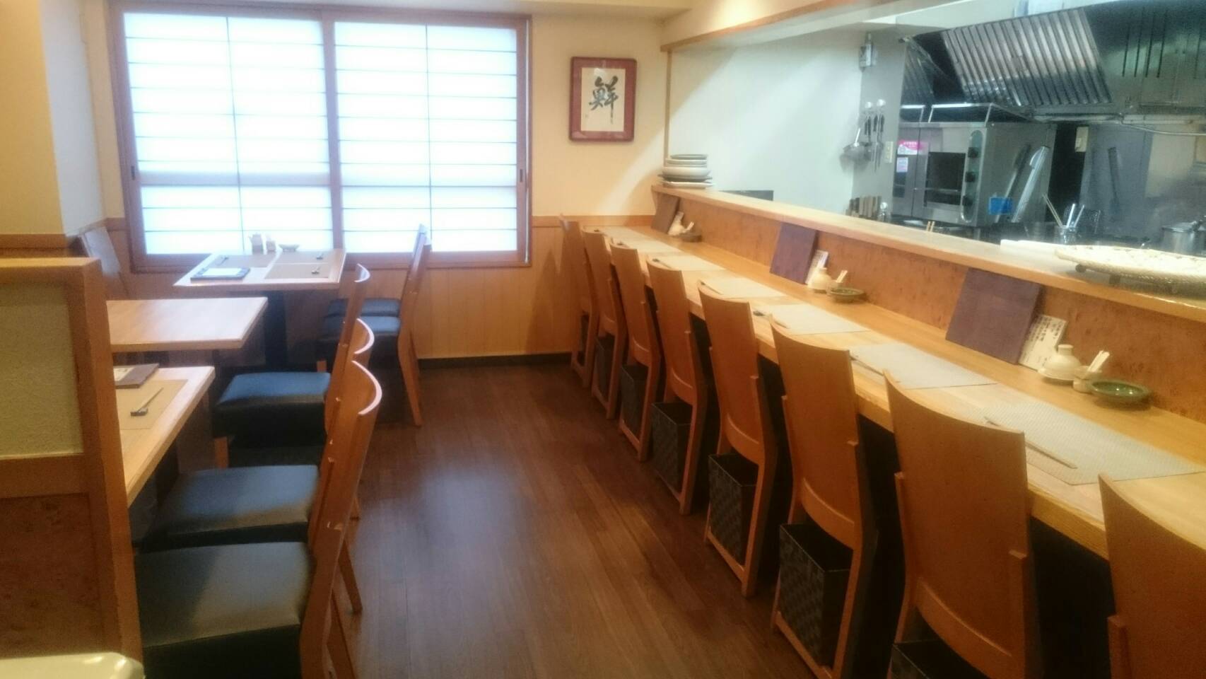 カウンター8席、テーブル10席 クレジット決済可、喫煙可です。