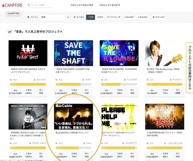 早くも多くの方々からの応援を頂き【福山Cable存続ご支援依頼プロジェクト】80%に迫っております。CAMPFIREサイトで人気上昇中プロジェクト&リターン両方に選ばれました!