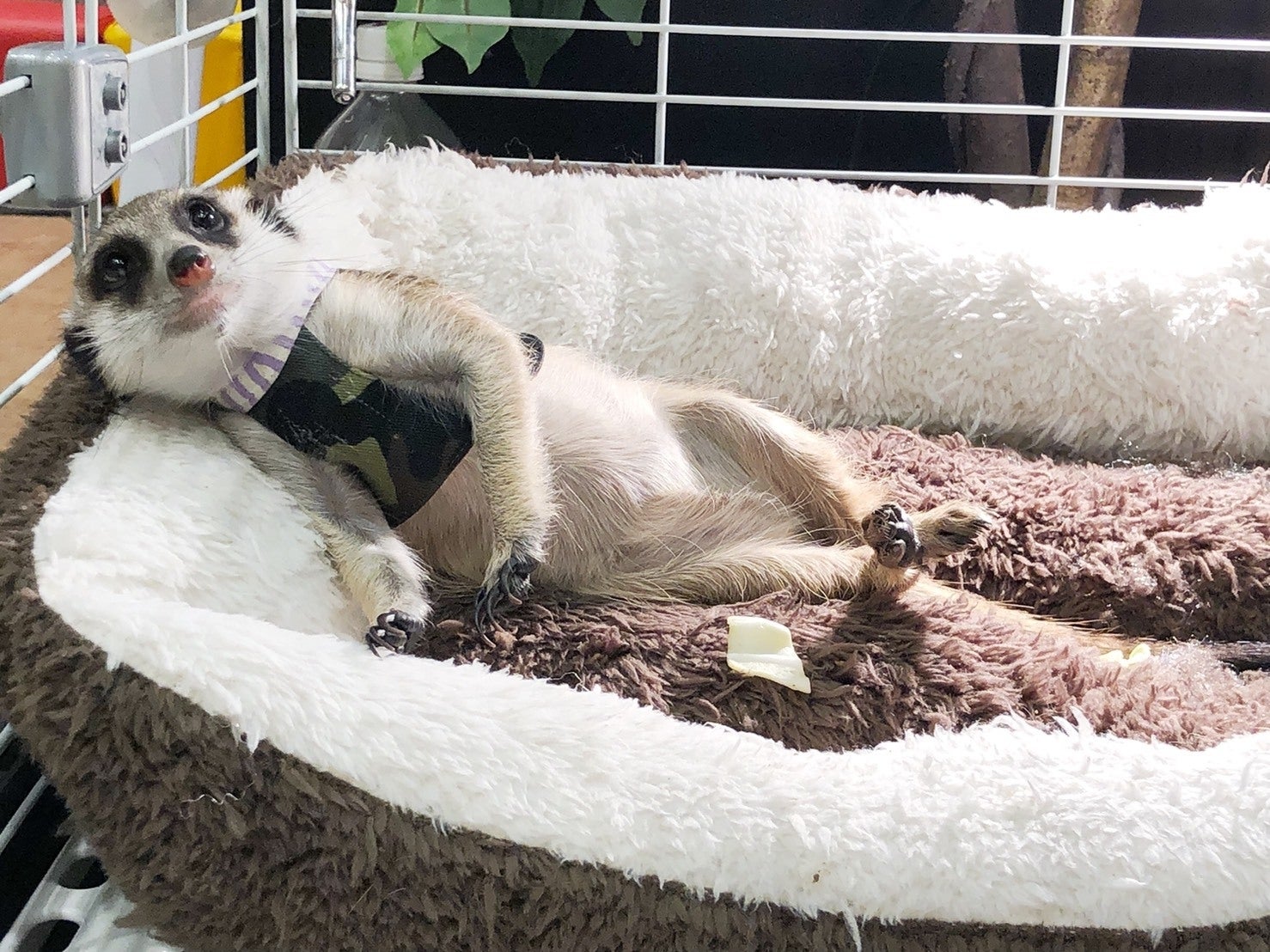 おじさんのように横になるミーアキャット
