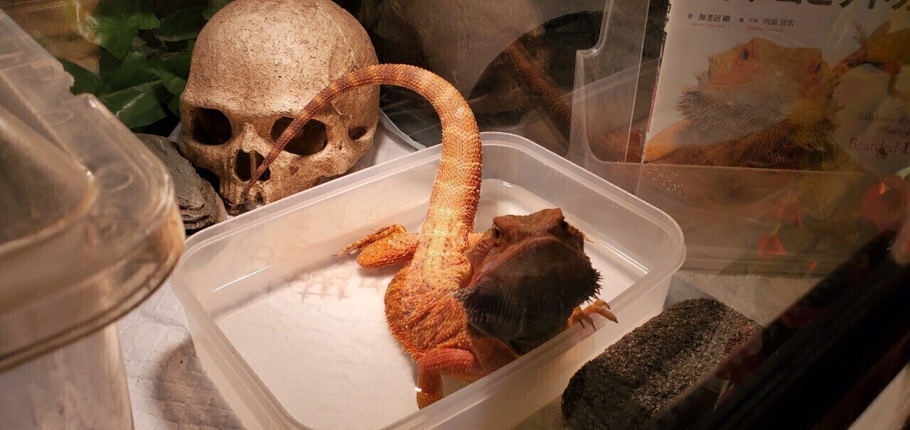 お風呂のように水に浸かるトカゲ