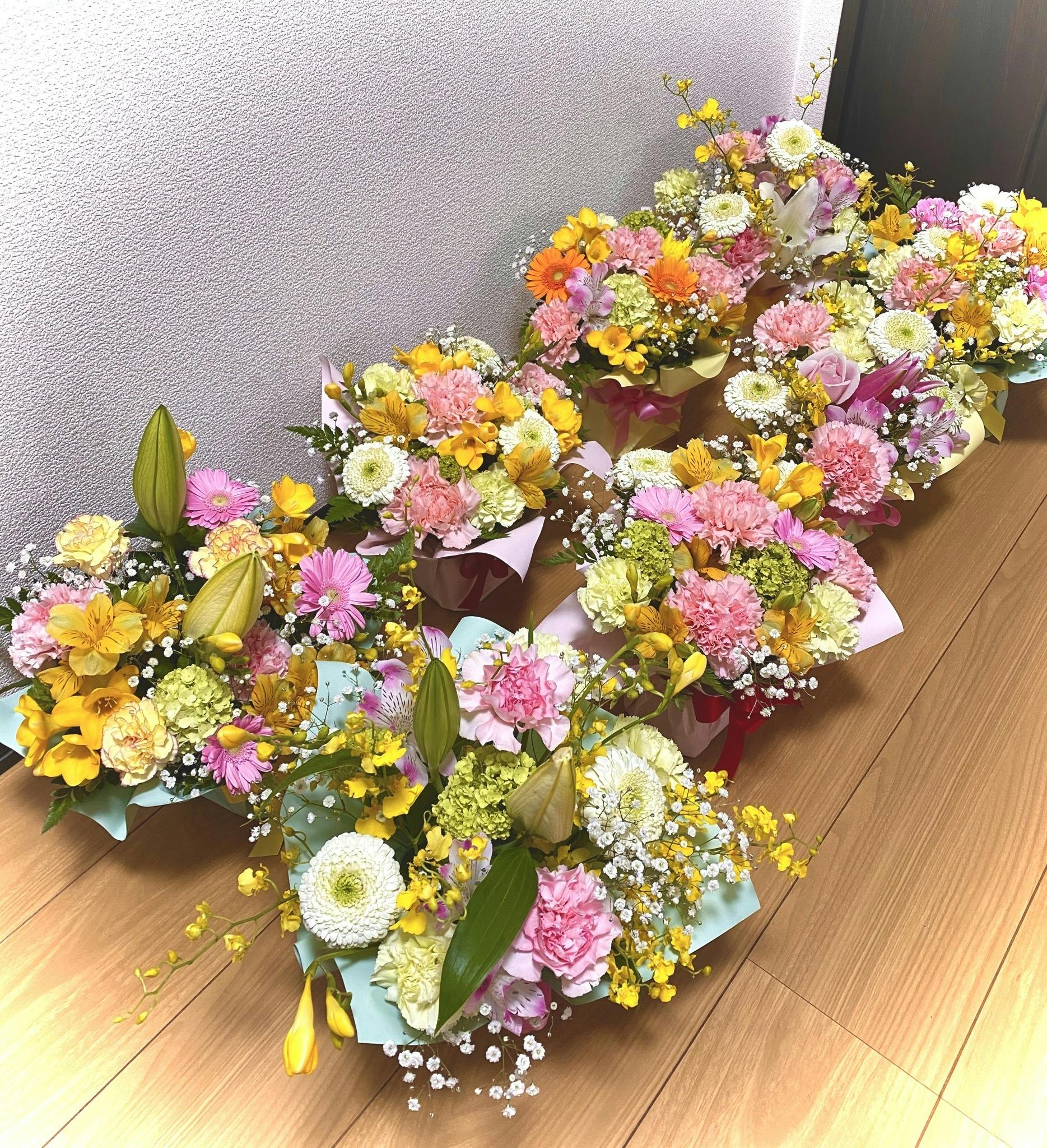 2020/04/20 20:50はじめに、ご支援下さった皆様、本当にありがとうございます!応援してくださる方々がいるという現実が、とても励みになり嬉しく思います♪ここに活動報告として『お花プレゼント企画』の実施を発表していきます。本日、10名分のお花をプレゼントさせて頂くべく大量のアレンジメント製作を致しましたー!ジモティ(山形県)にて先着順で募集致しましたところ、4時間程で満枠となりました。フラワーデザイナーのスタッフも、ラッピングの嵐にバタバタと動いておりました*受取りは、コロナ感染予防のためマスク着用にて順番にご案内し、早くいらした方は車内でお待ち頂くようにしました。皆さん意外と大きなアレンジメントだとビックリして、とても喜んで頂きました!これからもまだ、このコロナで暗い日々が続きそうですが、花をもらってわずかな時間ですが少しでも多くの人が笑顔になれるよう、私達も丁寧にこの活動に取り組んで参りたいと思います*irieplan 増田 もっと見る