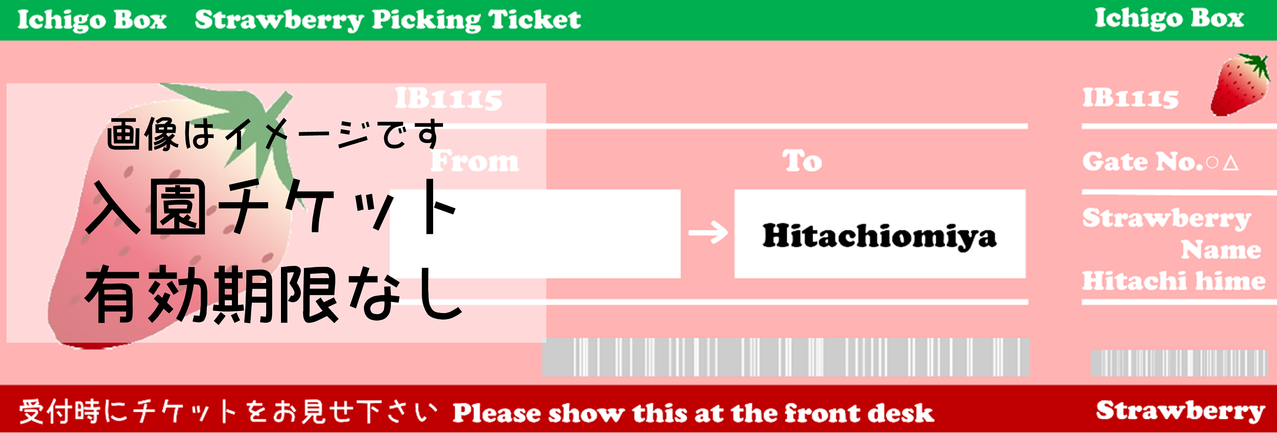 有効期限無しの【いちご狩り入園チケット】をご用意させていただきます。