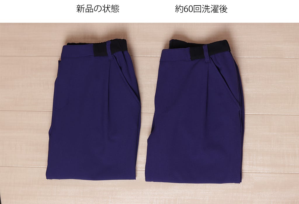 若干の馴染み感は出ますが、きれいなブルーの発色が保たれていること、素材の程良いハリ感はキープできていることがおわかりいただけると思います。