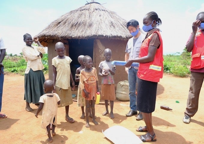 ウガンダと南スーダンの国境付近にある、パギリニア難民居住区では、難民世帯への戸別訪問生活物資支援を行っています。