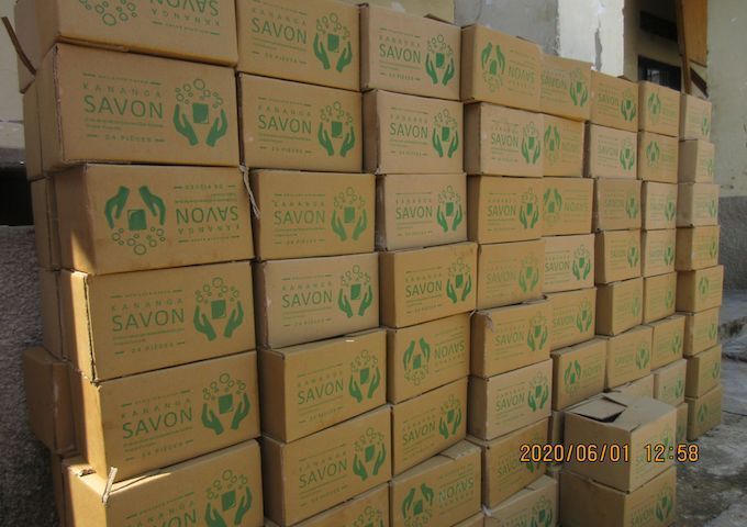 そんな中、テラ・ルネッサンスではコロナの感染予防の支援とともに、コロナ禍で生活に困窮している方々への生活物資支援や生計支援を行ってきました。ここ、カナンガでは、昨年、石鹸作りの技術訓練をして、自立していた紛争被害を受けた女性たち100名に、石鹸作りの仕事を担ってもらっています。
