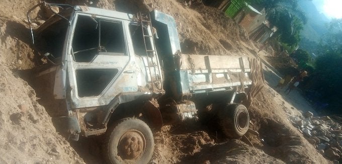 写真:土砂に埋もれたトラック