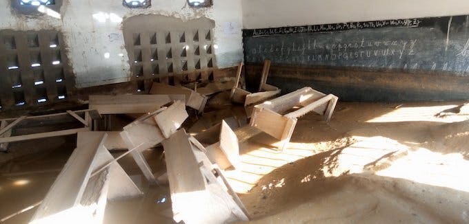 屋根近くまで土砂に埋もれたままの家や学校、教室の中も黒板の高さまで土砂で埋れていたり、と洪水被害の大きさが伺えます。