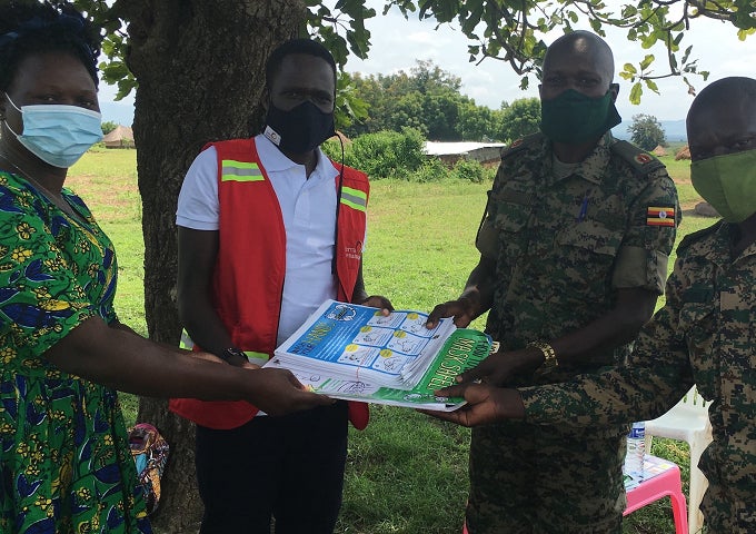 この状況を鑑みて、国境の警備をする軍関係者らへ500枚のマスクと、100枚のマスク使用方法の啓発ポスターなどを配布して、感染予防についての啓発活動を行ってきました。