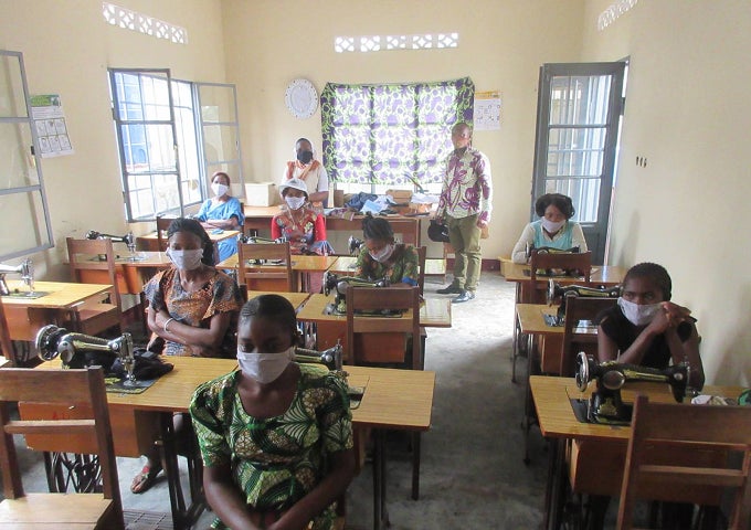 それに合わせて、当会のコンゴ事業でも、人の集まる職業訓練などの活動を再開しました。まずは、中央カサイ州での洋裁訓練を8月3日に再開し、順次マスクの製作や追加の技術訓練を開始しています。