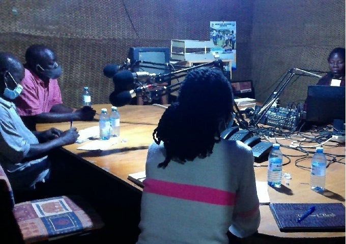 モヨ県の難民とホストコミュニティの方たちに向けて、テラ・ルネッサンスのスタッフ、県の保健オフィサー、助産師、警察官が啓発を行いました。ラジオを使ったもので、感染予防法、マスク使用法や症状について2回放送しました。