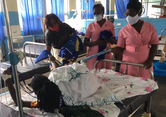 また、モヨ病院の妊産婦棟で泊まっている妊産婦の方たち15名に、食料、生活用品、マスクや啓発ポスターを配布しました。コロナの影響で全国的に生活が苦しくなっていますが今回サポートした方たちは、その中でも特に支援が必要な方たちです。