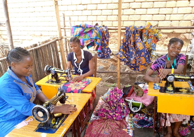 ↑洋裁店をグループで開業し、仕事に励む紛争被害女性たち