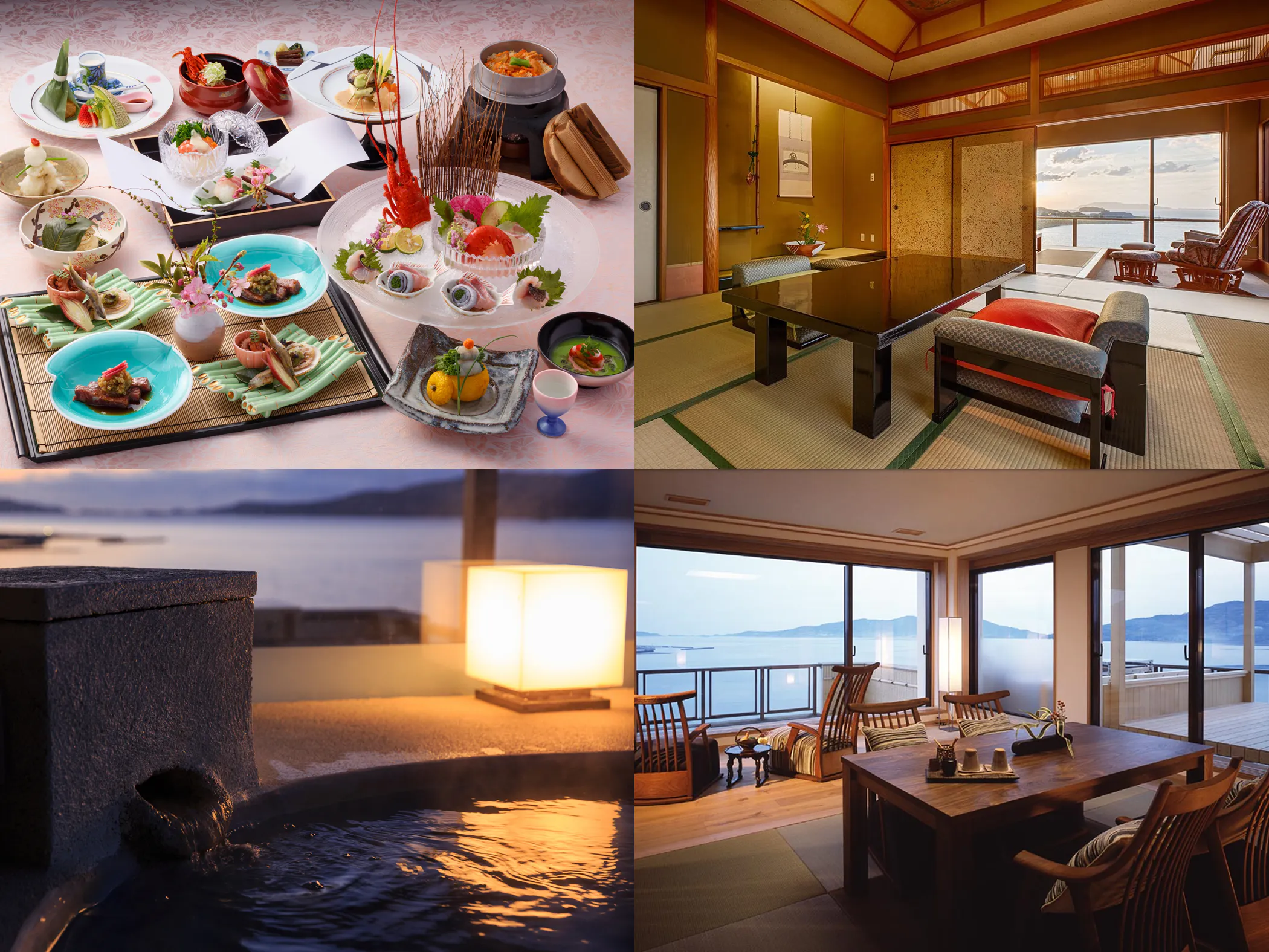 当館は油谷湾を一望できる場所に位置し、1973年創業し今年で47年目を迎えます。約100名のスタッフとともに、お越しいただいたお客様が「心をほどく おもてなし」を満喫していただけるよう努めております。その眺望と、美容液のような温泉の泉質が特徴で、多くのお客様からお喜びの声をいただいております。