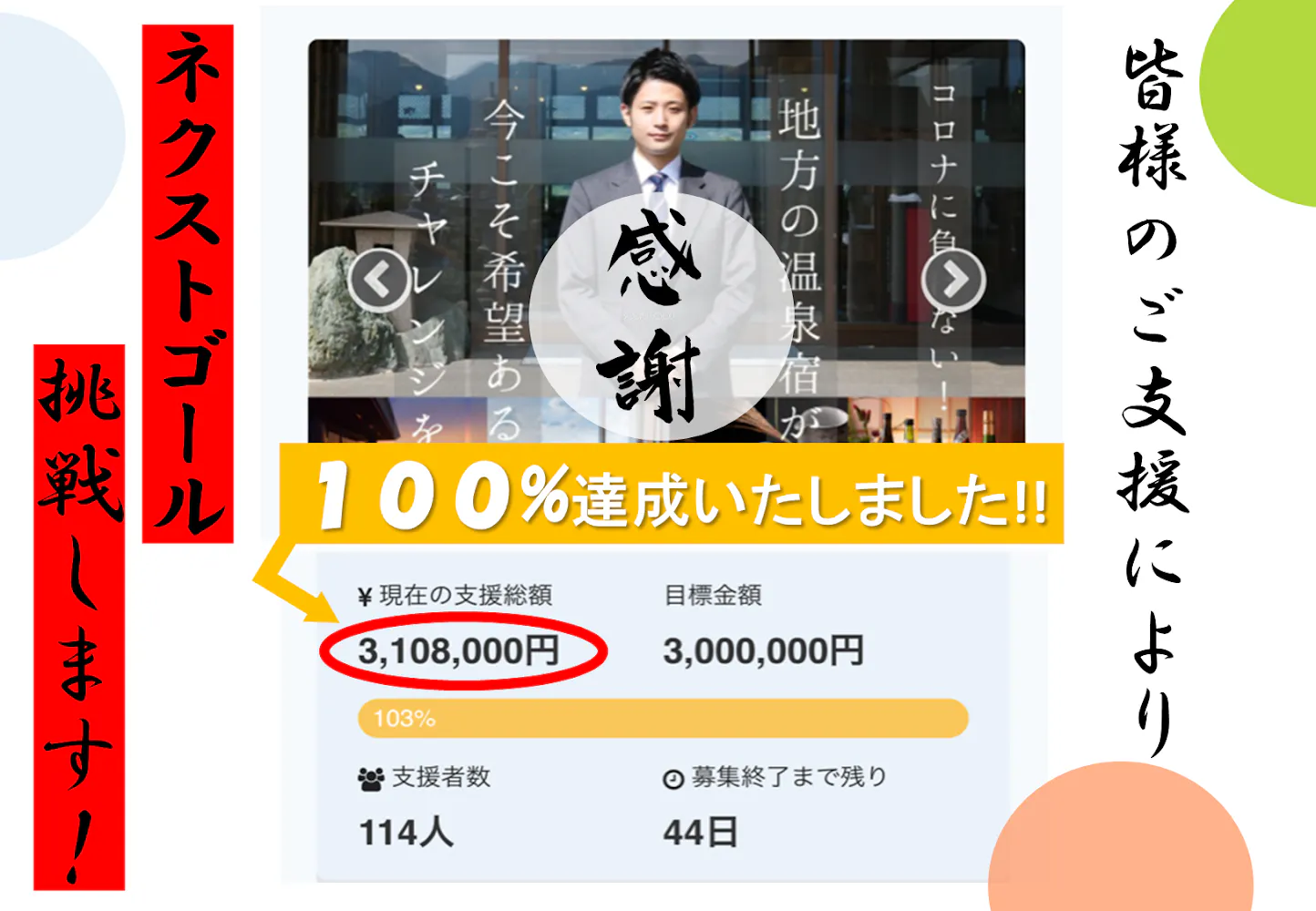 皆様からの温かいご支援、SNSでのシェアや、周りの方へのお声掛けをいただきましたおかげで、15日目で目標額300万円を突破いたしました。熱いエール、応援メッセージの一つ一つが、私たちの力になっております。本当にありがとうございました。
