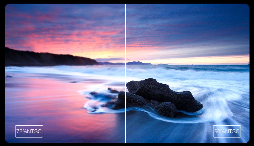 90%のNTSC色域は、従来の72%NTSC色域と比較して、
