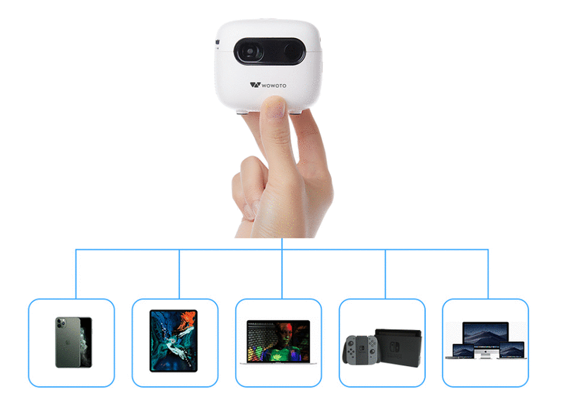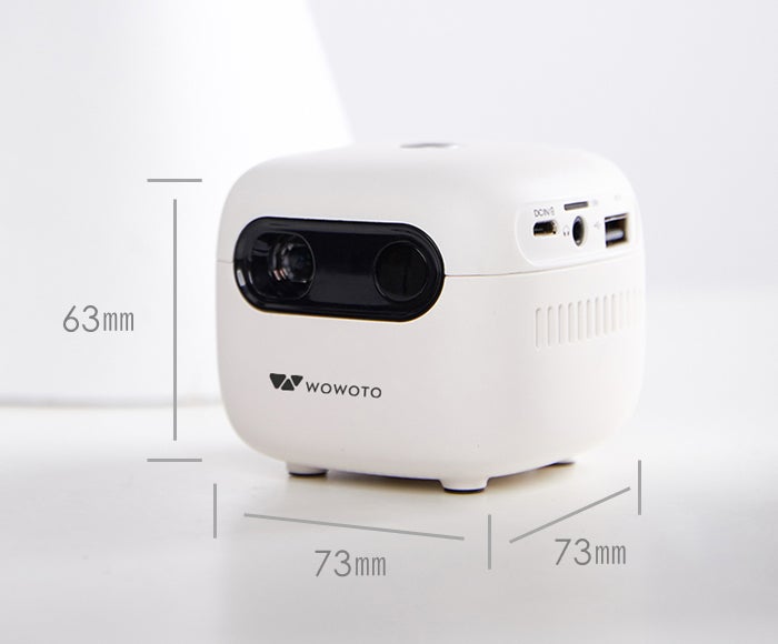 73*73*63mmのサイズと250gの軽さの小型軽量プロジェクター!