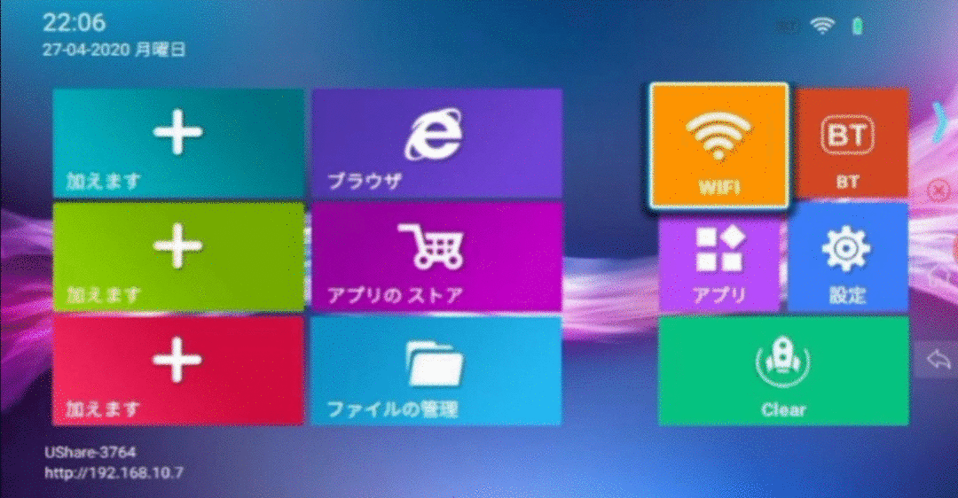 ・ミラーリング : 専用UShare、またはEshareアプリ、Mac/iOSのAirplay