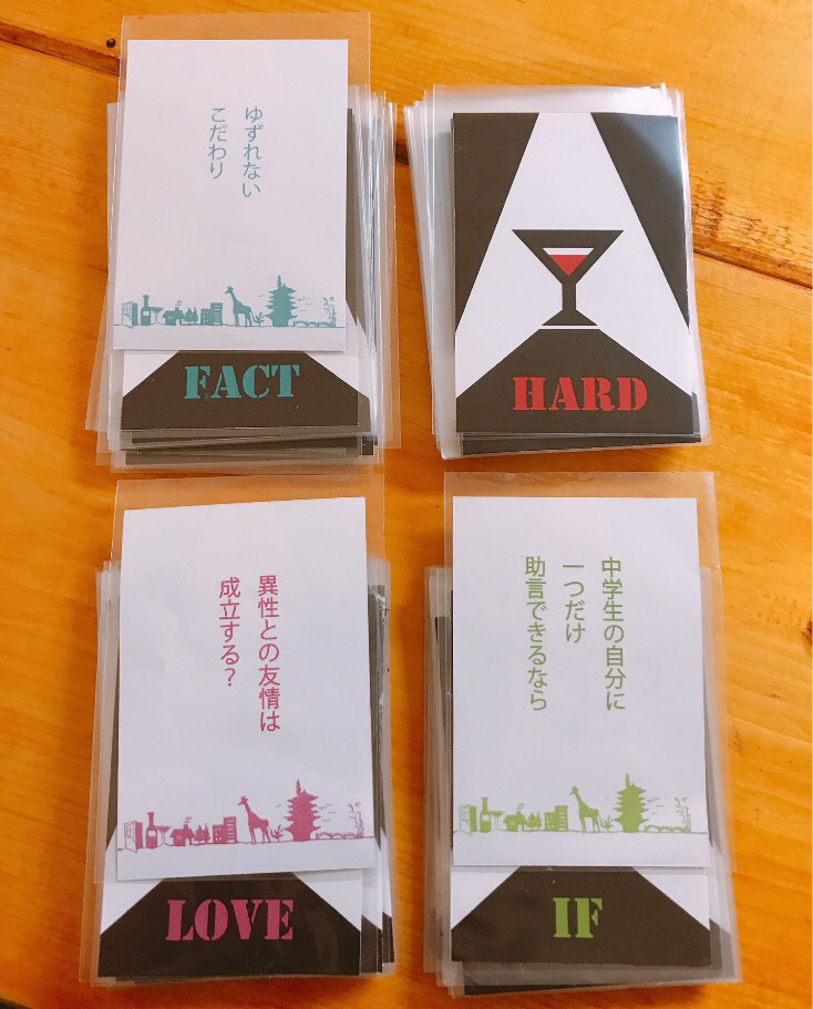 お客さんが作ってくれた話題カードなど、様々な「語り」のアイテムも店内に。