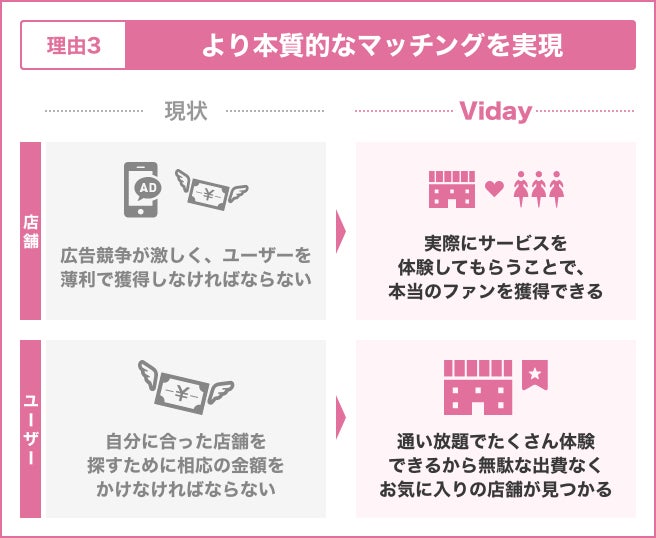 このように『Viday』は、相互の課題を解決する仕組みを採用しているため、店舗にとってもユーザーにとっても非常に大きなメリットを生み出すことができます。