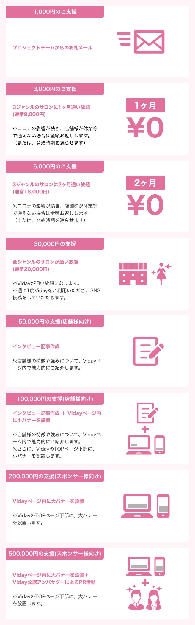 『Viday』を通して、美容業界、そして美容に悩んでいる方々に貢献できるよう、支援していただいた金額をもとに全力で行動させていただきます。
