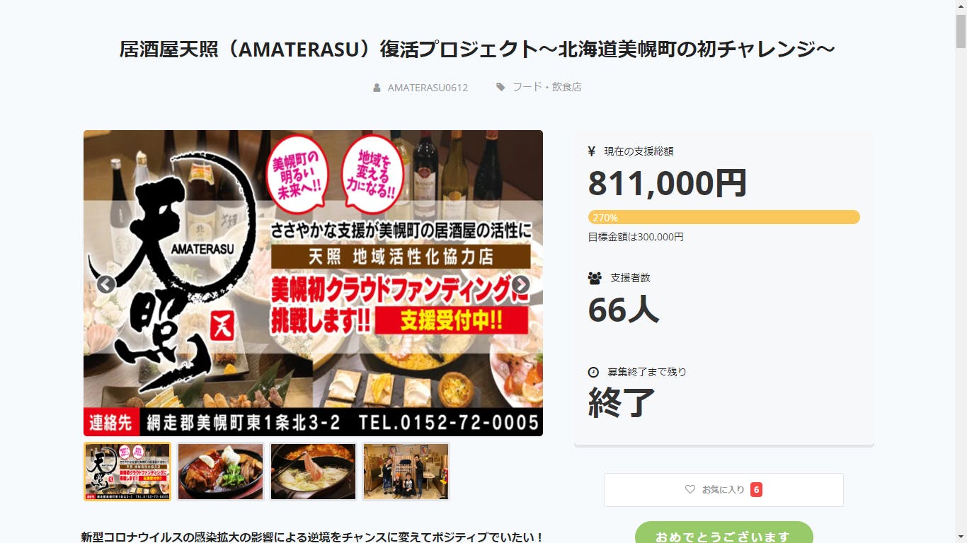 『66人』の支援者の皆様と『811,000円』という金額は事業の運営に大切に使わせて頂きます。