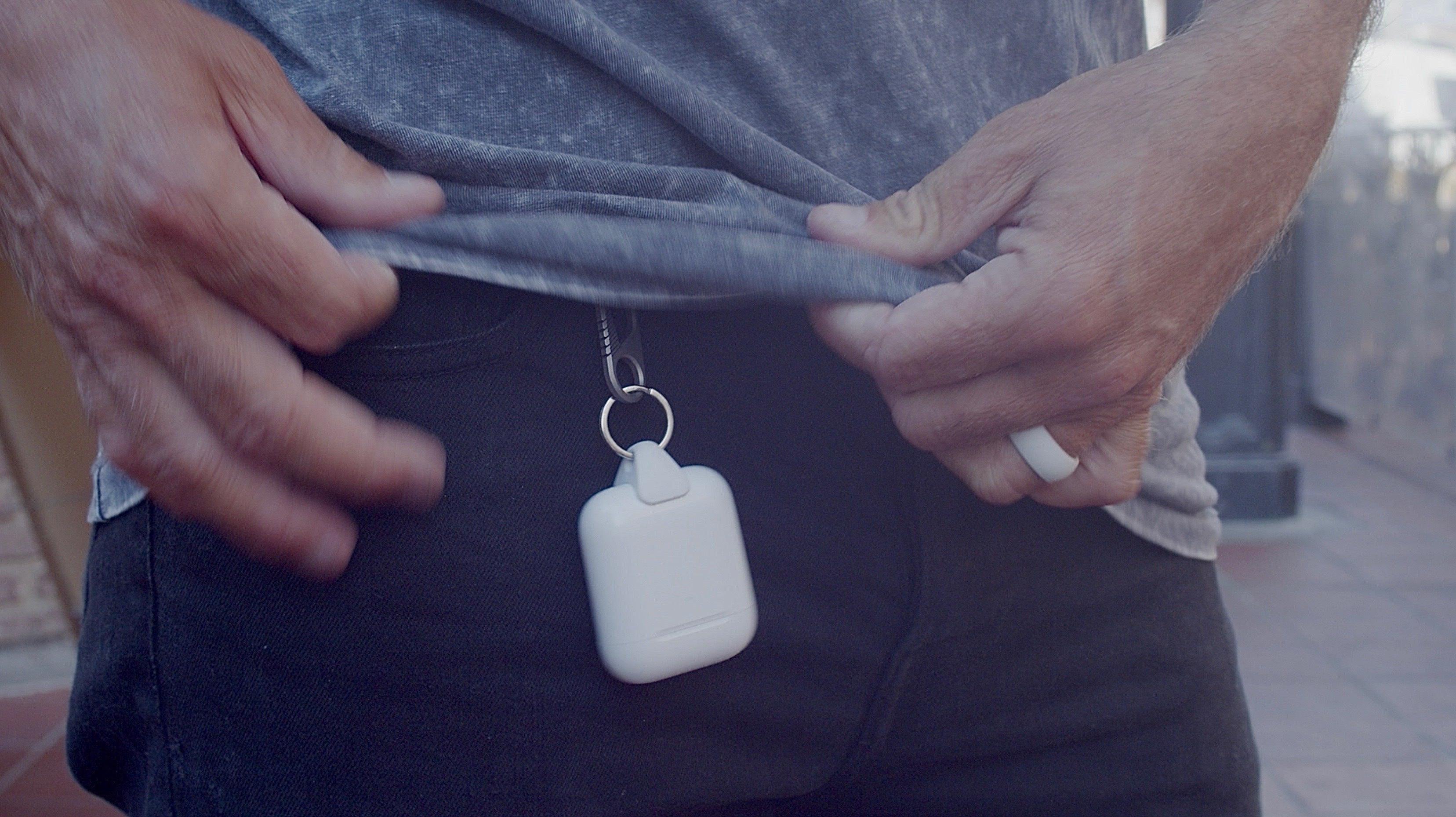 パンツのベルトに取り付ければ、いつでもどこでも使いたいときにAirPodsをさっと取り出し、使い終わったら迷いなくケースにしまえます。